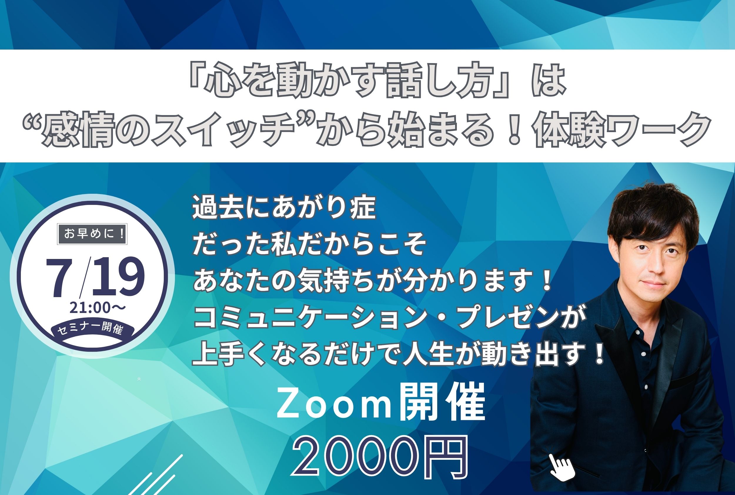 | セミナー名 | あがり症をぶっ壊せ!誰でも”神プレゼンテーション”ができる魔法のメソッド、ついに解禁! |